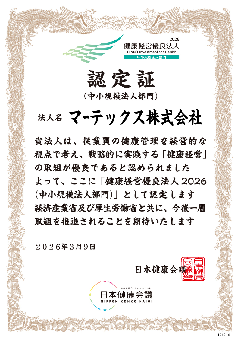 これからも皆様と未来に向けて挑戦し続ける会社、マーテックスにご期待ください。